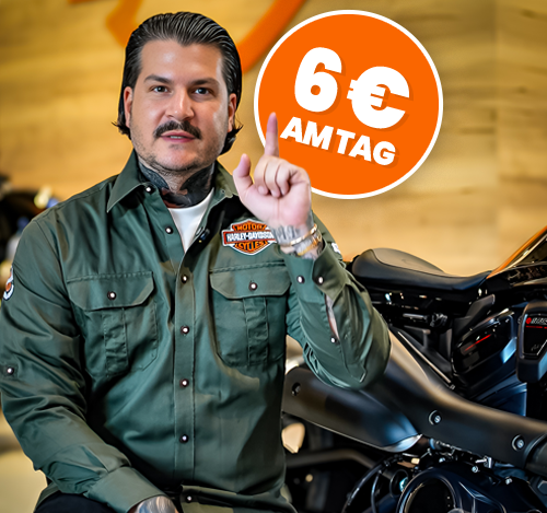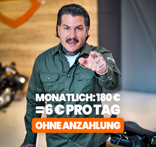 180 € im Monat. 0 € Anzahlung. 100 % Harley.