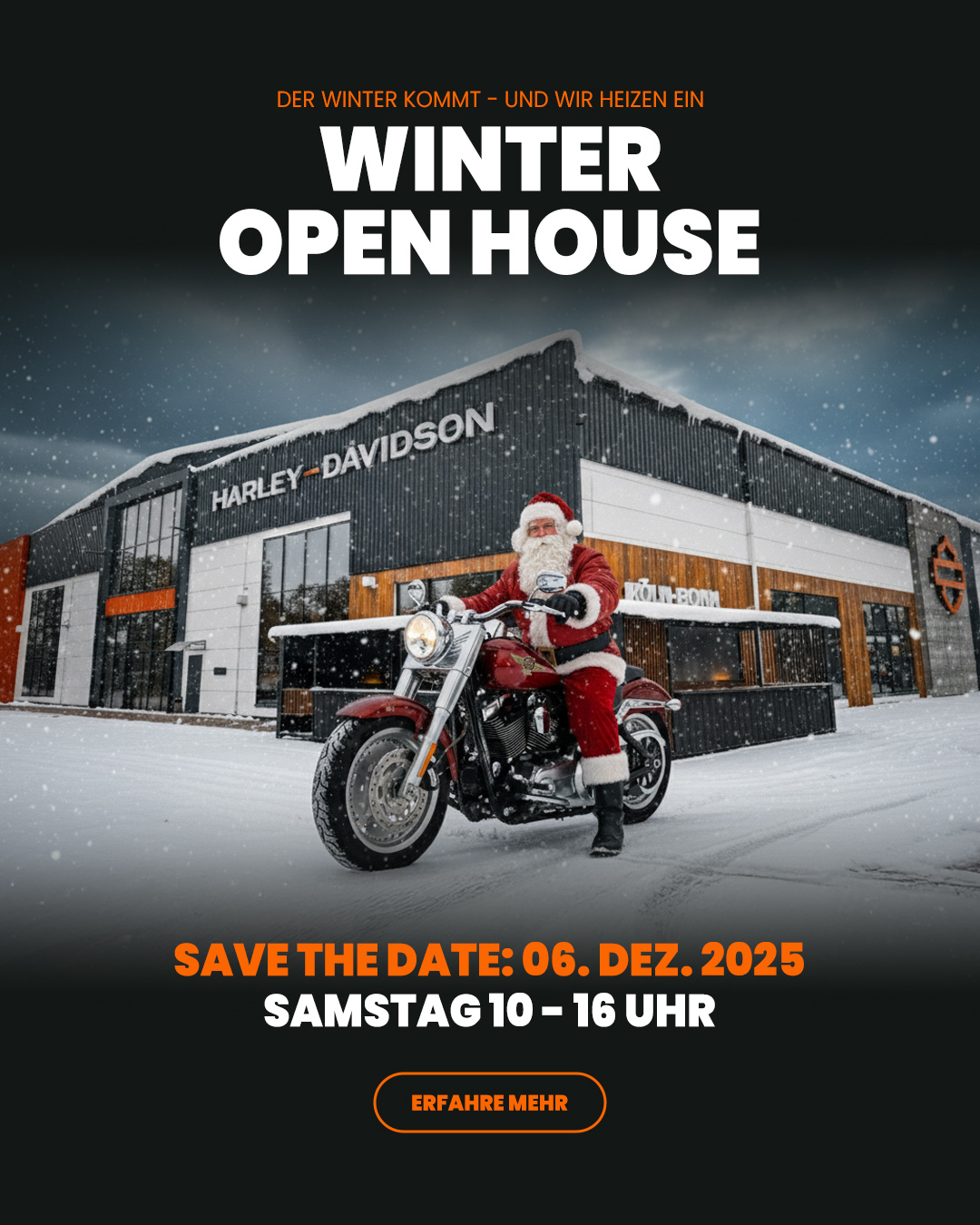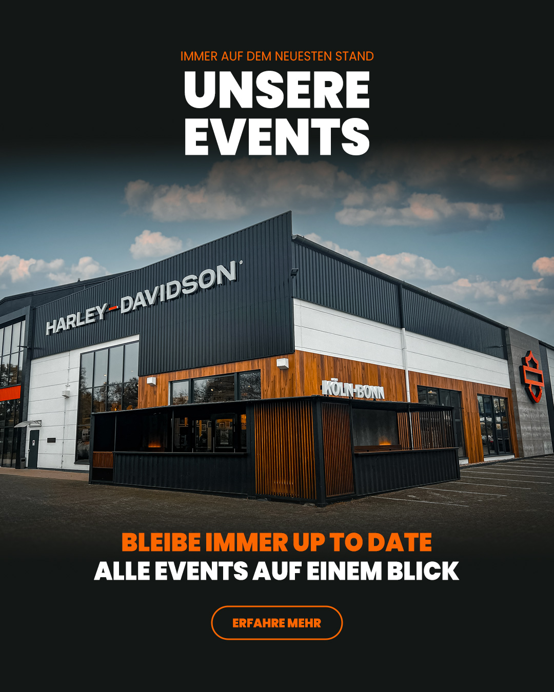 Harley-Davidson Köln-Bonn: Dein Megastore in Wesseling mit Europas größtem Showroom! Auf über 3.000 Quadratmetern erlebst du bei uns die ganze Welt von Harley-Davidson: über 100 neue und gebrauchte Bikes jederzeit vor Ort, eine riesige Auswahl an Parts & Accessoires, Merchandise, Fashion und natürlich unseren professionellen Werkstatt-Service.